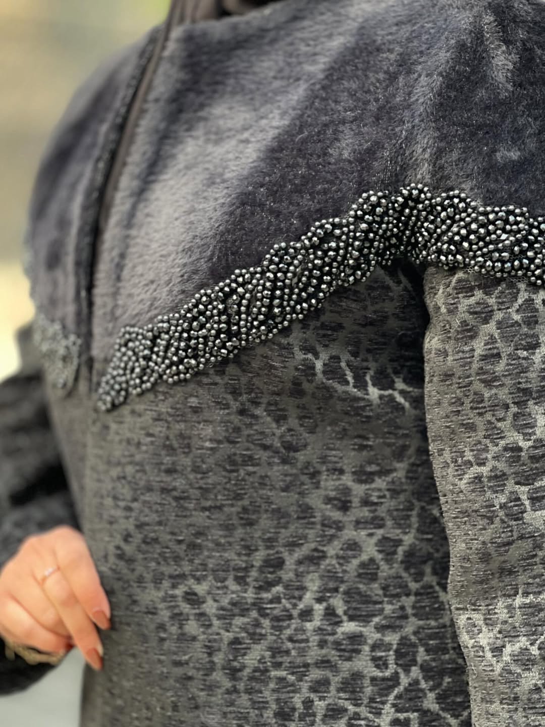 این پالتو ترکیبی از پارچه ژاکارد مخمل و پوست با جواهردوزی ظریف و چشمگیر است. شیک، خوشفرم و فوقالعاده تنخور مناسب استایلهای رسمی و مجلسی.