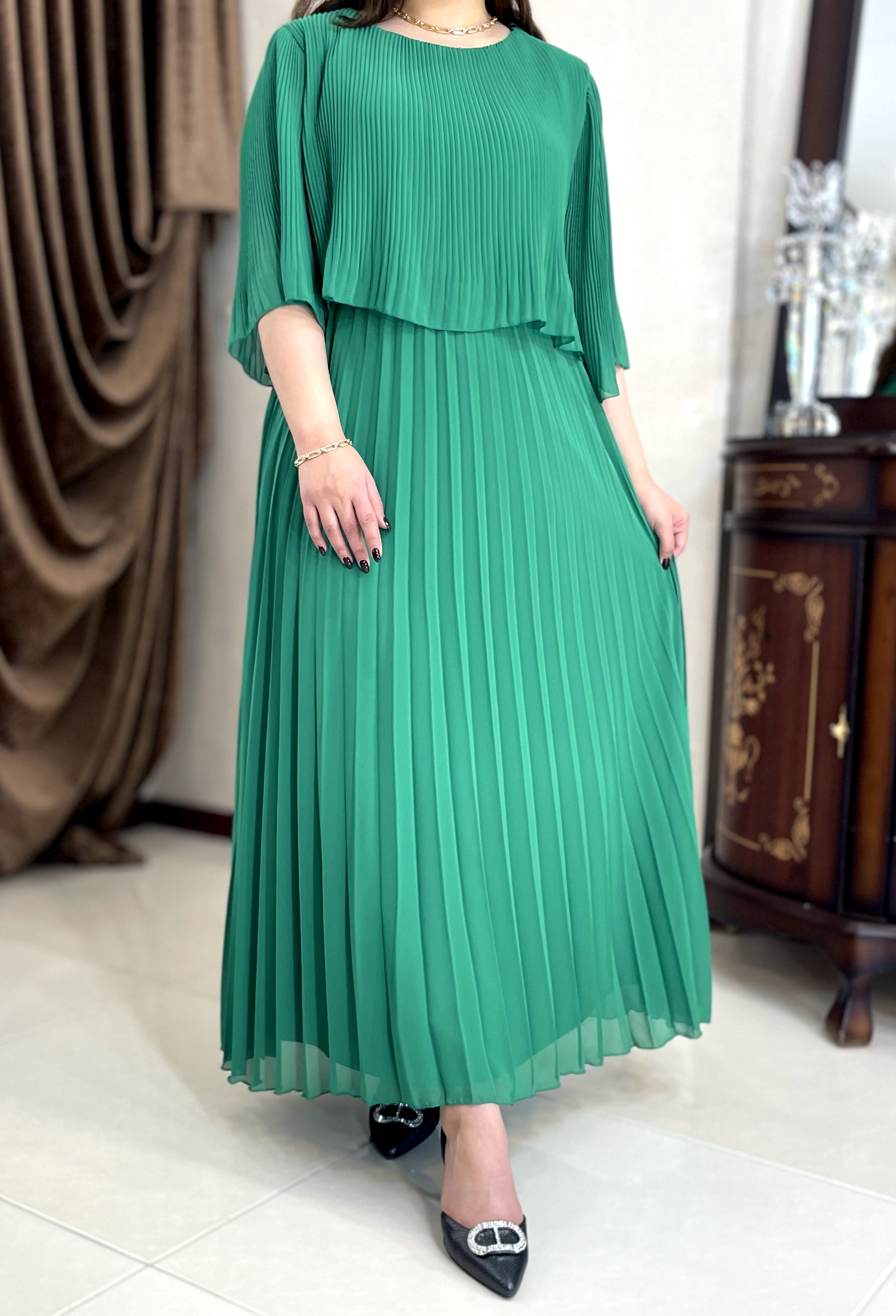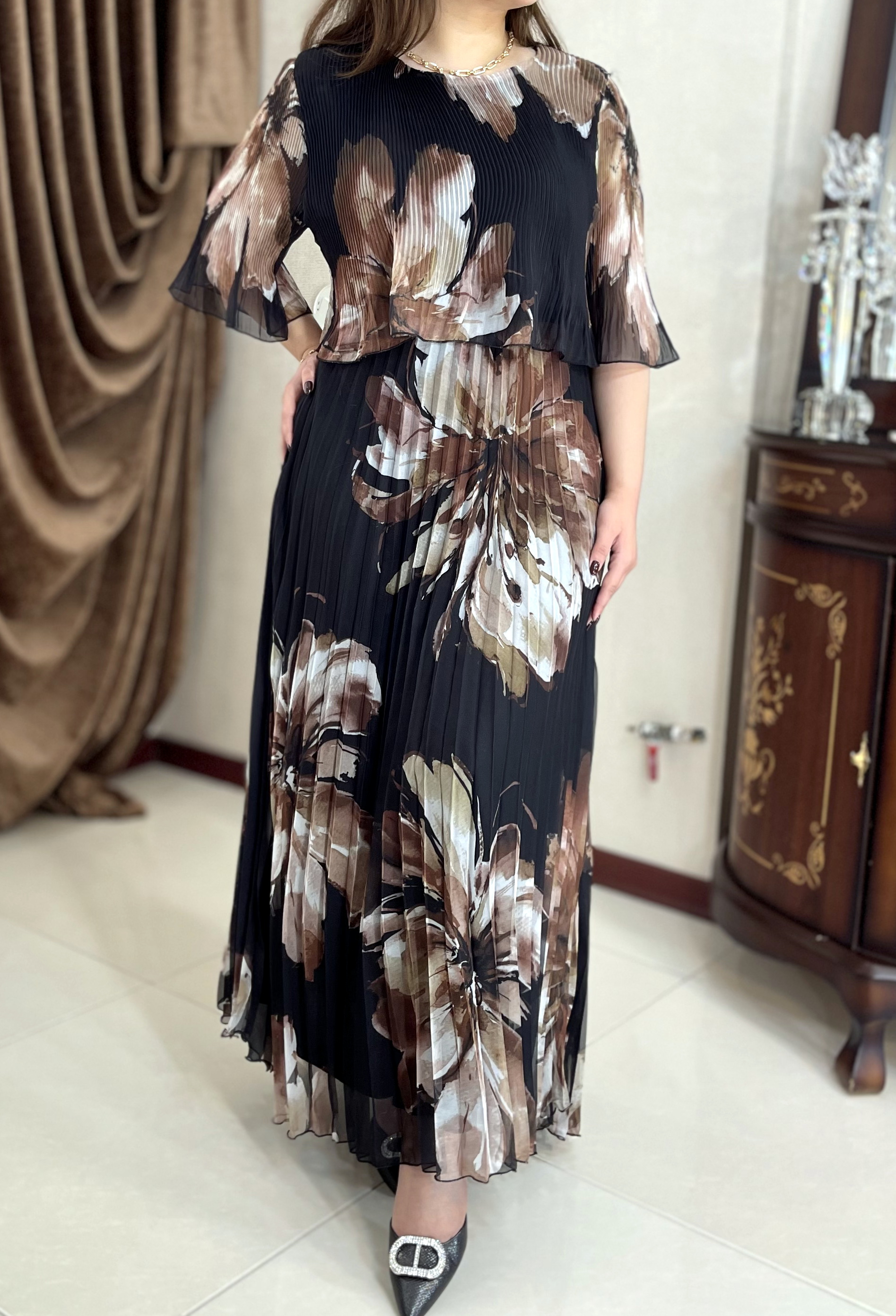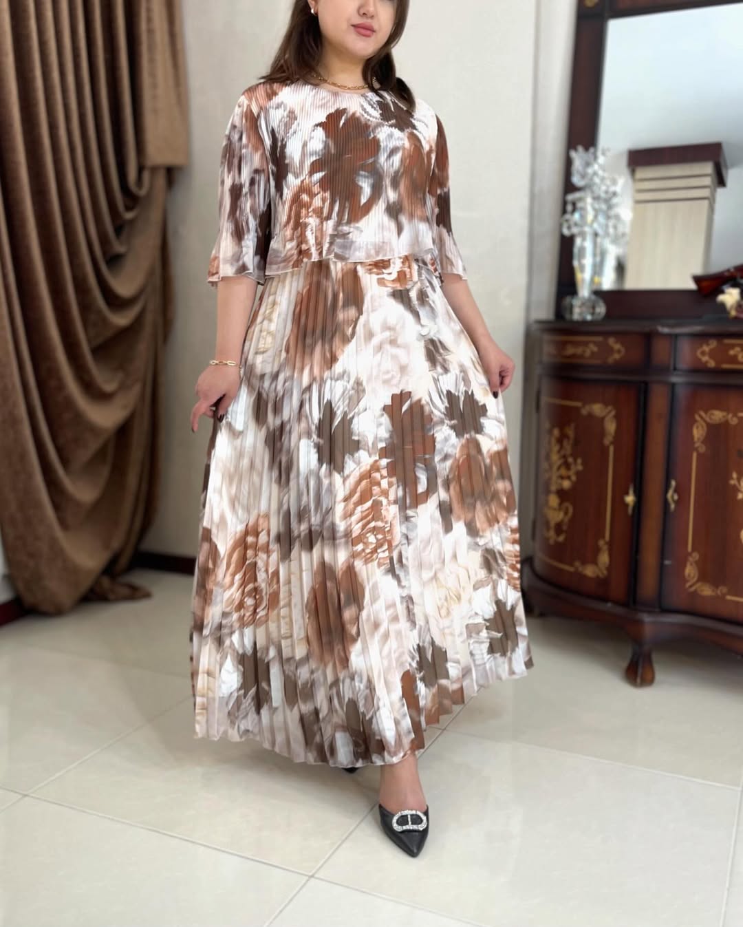 این مدل فقط یک پیراهن نیست. برش تمیز پلیسههای منظم و پارچهی باکیفیت ترک کاری کرده که روی تن کاملاً ایستدار و شکیل باشه. طراحی کاملاً پوشیده، انتخابی مطمئن برای مهمونیهای مختلط و رسمی.