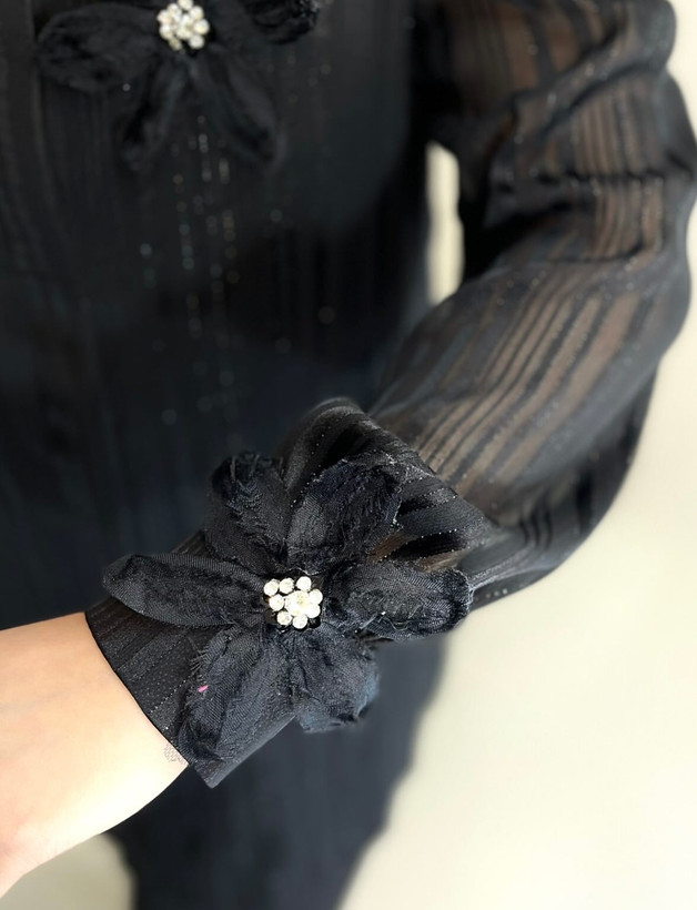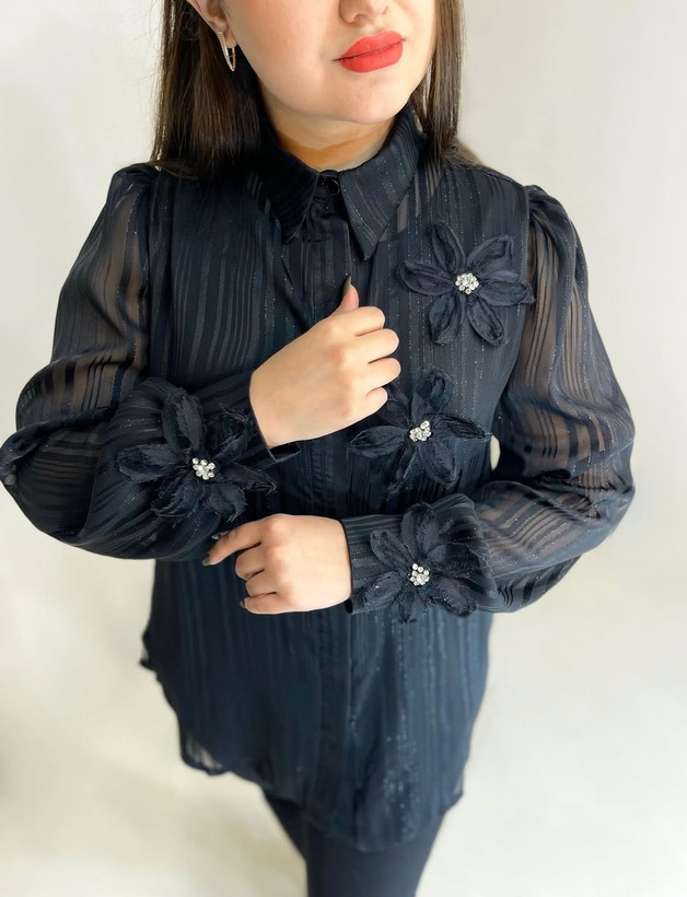 یک نمونه دیگه از شومیز های مشکی مجلسی جذابمون با جنس حریر دیپلمات و به همراه یک عدد تاپ.