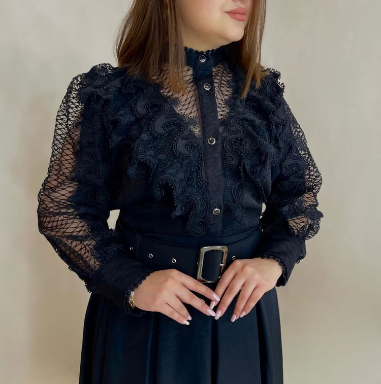 شومیز پرنسسی در رنگ بندی مشکی و سفید.